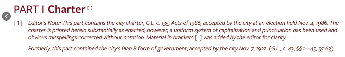 Looked back and realized I’d previously written that the Waltham City Charter was last updated in 1986. And/or 19871234.