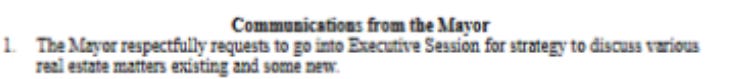 And they’re back into executive session tonight “to discuss various real estate matters existing and some new.”