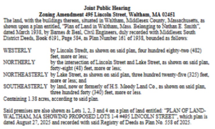 Also - zoning amendment for 495 Lincoln Street (a.k.a. Pizzi Farm).